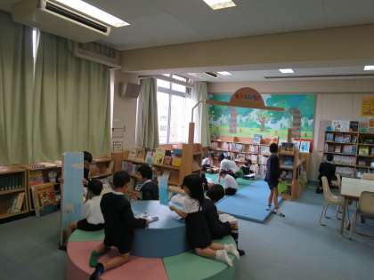20分休みは、雨が降っていたので図書室開放がありました。多くの児童が図書室にきて、お気に入りの本を見つけて読書を楽しんでいました。図書室の前には、おしゃれな看板も置かれています。わくわくしますね!