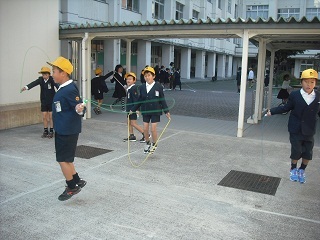 体力づくりでは、11月をなわとび月間として、全校でなわとびに取り組んでいきます。今日は、あっちでもピョン、こっちでもピョンとなわとびに挑戦していました!