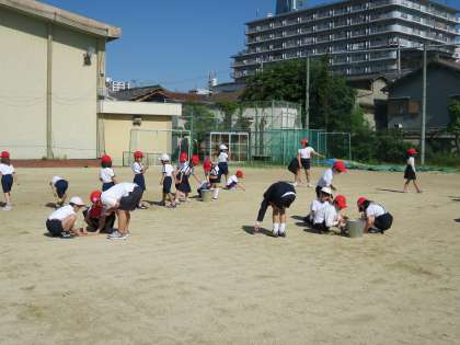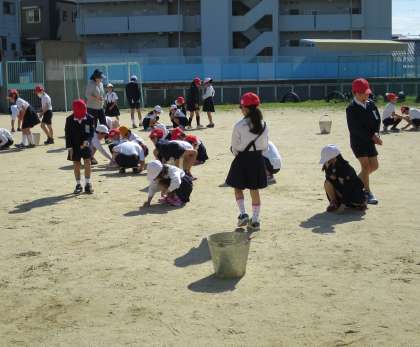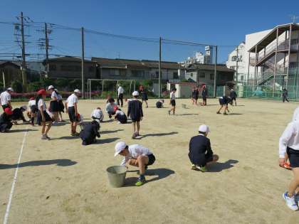 今日は、久しぶりに朝から気持ちのよい青空が広がっていました。運動会に向けてみんなで運動場の小石をひろいました。
