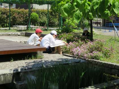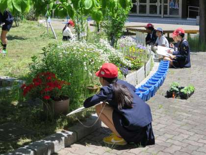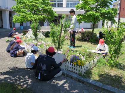 6年生は、3時間目に中庭の植物を写生していました。細かい所までよく見て描いていましたね。色をぬって完成した植物の絵を見るのが楽しみです(*^_^*)
