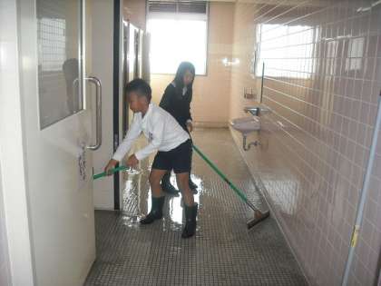 11月の生活目標は「ピッカピカ みんなのトイレ 気持ちよく」です。どの学年も少ない人数で、毎日トイレそうじをしています。