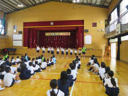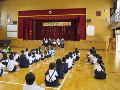 1時間目に、1年生を迎える会「どうぞよろしく集会」がありました。1年生一人一人に名前や好きな食べ物などをインタビューしたり、ふれ合いゲームをしたり、班のめあてを発表したりしました。これからどうぞよろしくね!