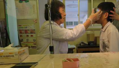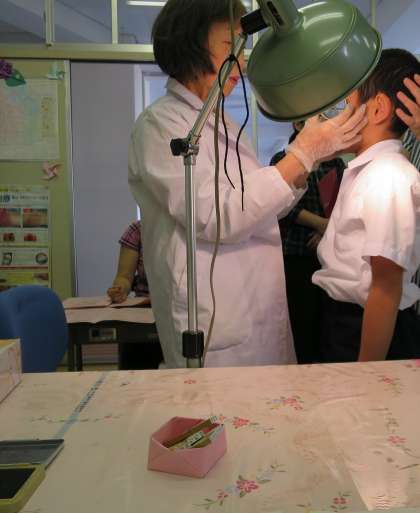 午後から、眼科検診を行いました。どの学年も、自分の順番まで静かに待つことができていました。検診の態度もよく、先生にほめていただきました。