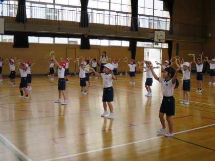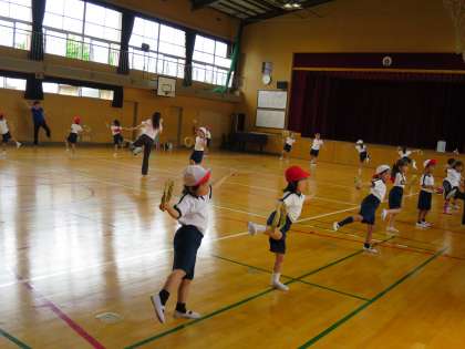 音楽のテンポに合わせて、楽しそうにのりのりでダンスをしていました。隊形の変換に向かうのも全速力でがんばっています!