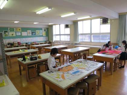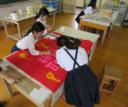 休み時間や放課後に、毎日コツコツ応援旗に色をぬっています。完成まであと少しになりました。友だちと協力してがんばっています。完成が楽しみです(*^_^*)