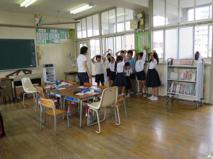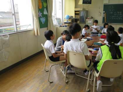 明日は、みんなが楽しみにしているたてわり班遠足です。今日は、たてわり班に分かれて班のめあてや約束を決めたり、集合写真のポーズを決めたり、何をして遊ぶのかを決めたりしました。楽しみです(*^_^*)