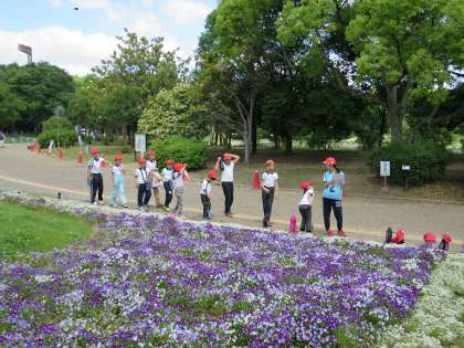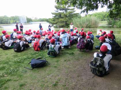 全校で長居公園にたてわり班遠足に行きました。鶴橋駅では、駅員さんにとても元気のよいあいさつができていました!植物園に着くと、きれいな花々に囲まれながらリーダーを先頭にポイントラリーしました。