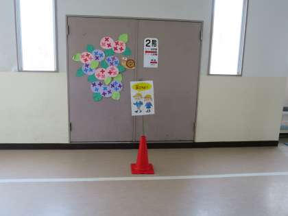梅雨に入りました。これから雨の日が増え、廊下や階段はすべりやくなります。廊下、階段を走ることにより、すべったり転んだり、けがをすることがないように「歩こうよ」という表示が各階に置かれています。意識しましょう!