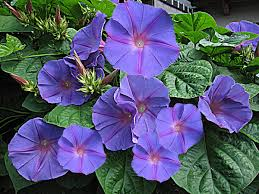 オーシャンブルーは、沖縄県に生息しているアサガオの仲間です。海の青さにも負けない濃い青色や紫色の花を咲かせます。アサガオと比べて生命力が強く、つるをよく伸ばして近くのものに絡みつくのが特徴です。大きくなると10m以上に生長し、大きな葉がハートの形をしていることから、緑のカーテンにもよく利用されています。学校では、玄関付近に育っています。