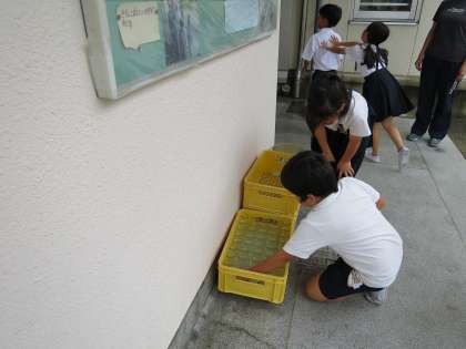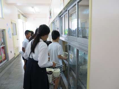 給食室に返却に来た時、どの学年も大きな声で「ごちそうさまでした」「おいしかったです」など感謝の気持ちが伝えられています。食器や食缶、牛乳瓶の返し方も丁寧です。