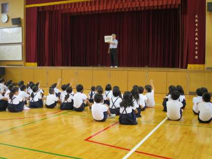 今朝の児童朝会では、校長先生が「4257」という数字を提示されました。この数字は何でしょうか?これは、大リーグのイチロー選手が日米通算4257安打を達成した記録の数字です。25年かかってようやく達成した大記録です。みなさんは、1学期の最初にたてた目標をどのくらい達成できていますか?自分のがんばりをふり返ってみましょう。