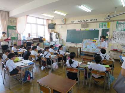 5時間目に研究授業がありました。国語科「道具を使う動物たち」です。キツツキフィンチが道具を使う様子を読み取って、動物の知恵じまん大会もしました。大変暑い中、集中してよくがんばりましたね。