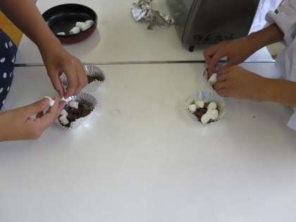 チョコレートマシュマロを作りました。材料を準備してトースターにセットしたら、みんなトースターの前でできあがりをじっと待っていました!どの班もおいしくできて大満足でした。