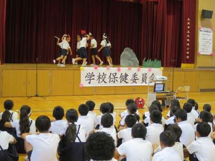 今日は、第2回土曜授業(学校保健委員会)でした。健康委員会児童の発表や、ヤクルトさんの出前授業「おなか元気教室」に続いて、児童代表や保護者の方々にインタビューも行いました。おなかを元気にするために、学習したことを早速実践したいですね。