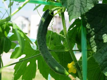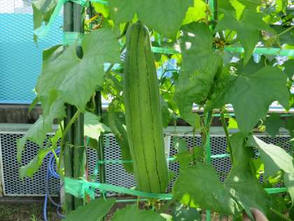上がキュウリの花、下がヘチマの花でした。プールの横には、ウリ科の植物が多く植えられています!葉や花、つるの様子などを比べてみるのも楽しいですよ。