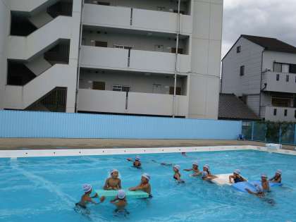 今日は、1学期最後のプール水泳でした。いろいろな浮き方で水遊びをしたり、バタ足だけで25mにも挑戦したりしました。最期は、少し長めの自由泳を楽しみました。