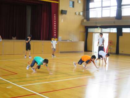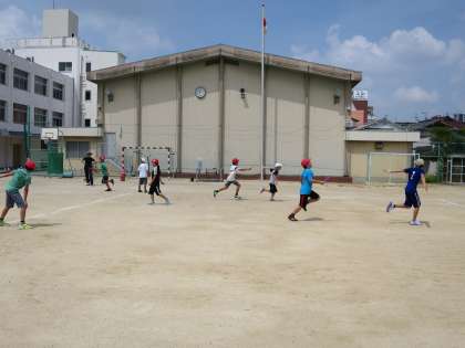 明日は、いよいよ大阪市スポーツ交流大会(陸上の部)です。今日は、最後の練習をしました。いろいろなスタートダッシュをしたり、ペアでタグ取りをしたり、チームでバトンパス練習もしたりしました。