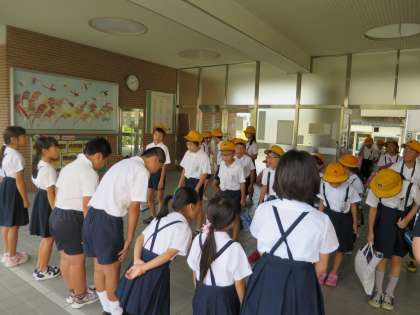 今日から2学期です。8時10分過ぎから、班長さんを先頭に子どもたちがぞくぞくと登校してきました。学校が一気に元気に明るくなりました!