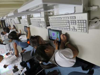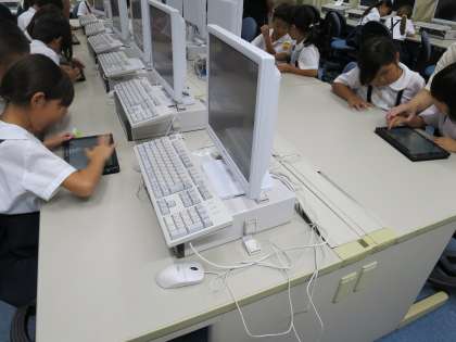 今日は、全学年で1時間ずつタブレットを体験する授業がありました。電源の入れ方から文字の書き方、お絵かきの仕方、写真の撮り方、電源の消し方まで、1つずつ教えていただきました。