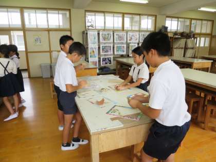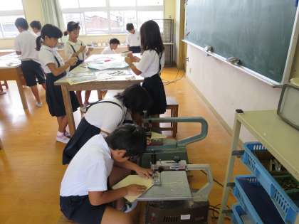 図工で、木版のパズルを作っていました。電動のこぎりで、パズルのピースを切って、やすりで磨いて・・・。安全に気を付けてコツコツがんばっていました。