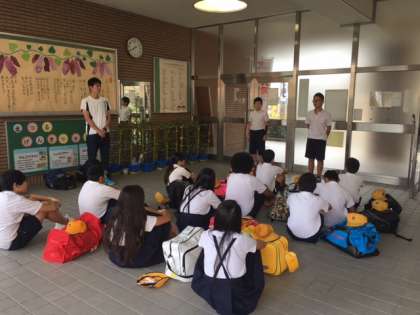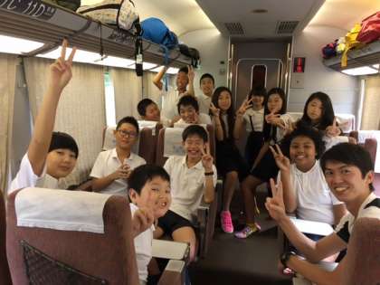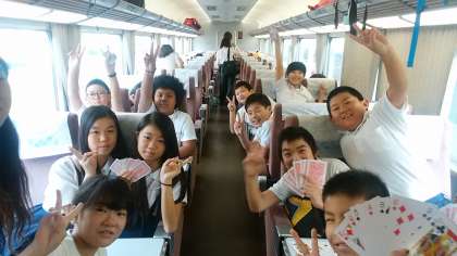 天気にも恵まれ、出発式を終えて無事に修学旅行に6年生全員で出発しました。電車の中では、ウノやトランプで盛り上がっています。みんな元気です。