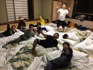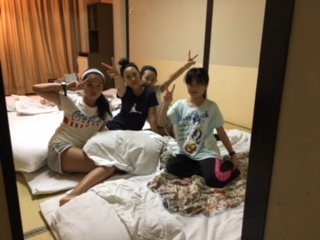 ホテル浜離宮の部屋の様子です。男子9名女子4名なので、男女1つずつの部屋で泊ります。みんな元気です。