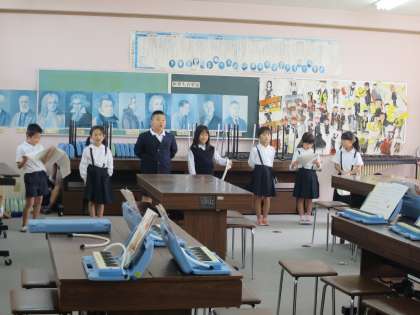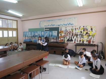 音楽室から、元気な歌声が聞こえてきました。学習発表会に向けて、歌やセリフの練習をがんばっていました!