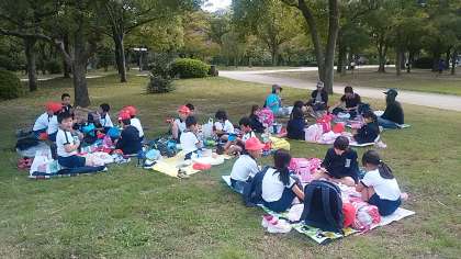 みんなでなかよくお弁当を食べています。作ったいただいたお弁当がおいしくておいしくて(*^_^*)ありがとうございます。