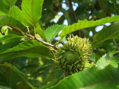 2年前に植えたクヌギの木に、立派なプクプくしたどんぐりができています。中庭にあるので、探してみましょう!