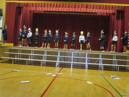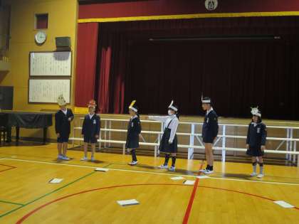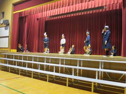 5年生は、役のゆるキャラの口調をまねながら演じています。15人のゆるキャラがそろうと本当にかわいいです。