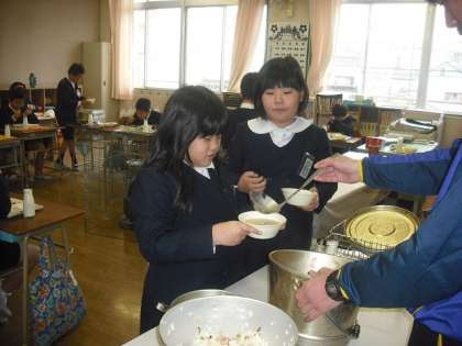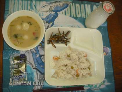 今日の給食は、お正月の行事献立で、ちらしずし・ぞう煮・ごまめ・きざみのり・牛乳でした。久しぶりの給食をみんなでおいしくいただきました。