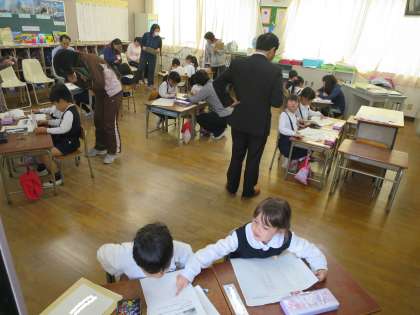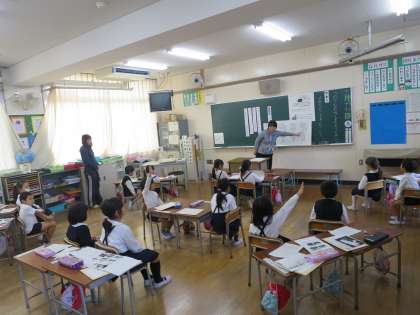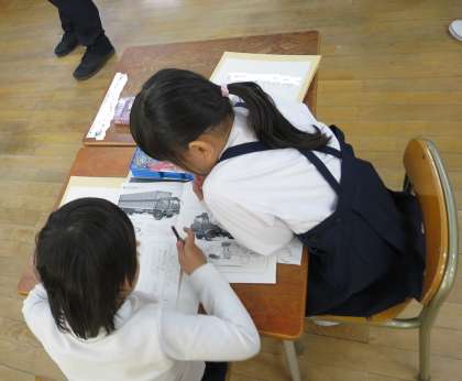 今日は、1年生で研究授業を行いました。国語科「いろいろなふね」です。資料から読み取ったことをもとに、下書き用のカードにまとめて、ペアで読み合って訂正したり付け加えたりしました。