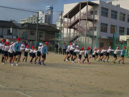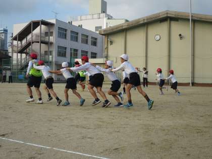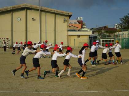 たてわりスポーツ集会最終日の今日は、むかで競争でした。6人が1チームになって競争しました。みんながにこにこで楽しいスポーツ集会になりました。