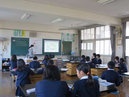 理科の学習です。自分たちが班で実験した映像をもとに、流れる水のはたらきについて学習していました。