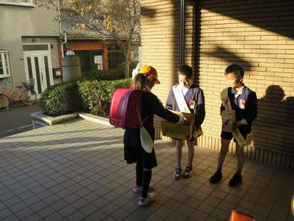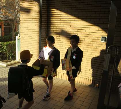 今日の共同募金の担当は、4年生でした。担当が一人しかいないので、手伝ってくれています!