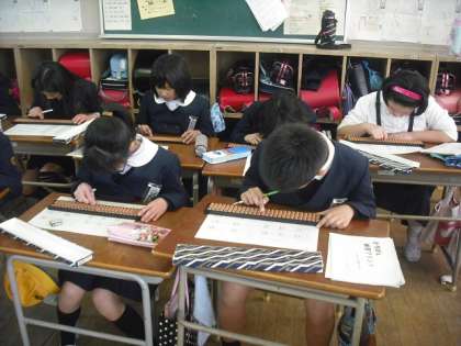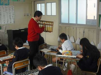 今日は、ゲストティーチャーによる3・4年生のそろばん指導がありました。3年生は、今月からそろばん指導が始まります。