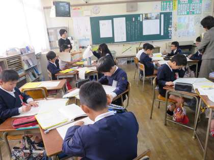 国語科で研究授業がありました。「くらしの中の和と洋」から読み取ったことをもとに、要点をまとめたり、引用したりして文章を書きました。自分やグループで推敲もしてより良い文章になるようにしました。