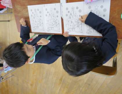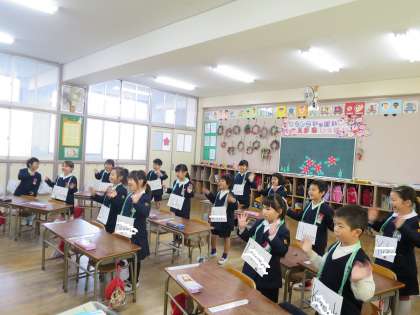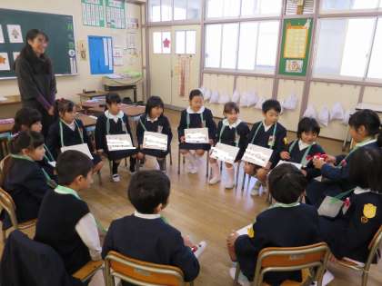 C−netの先生に、アメリカでのクリスマスの様子を教えていただきました。また、英語のあいさつ「 Merry Christmas and a Happy New Year」を使ったゲームをしたりしました。笑顔がいっぱいの学習になりました!