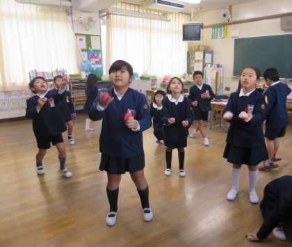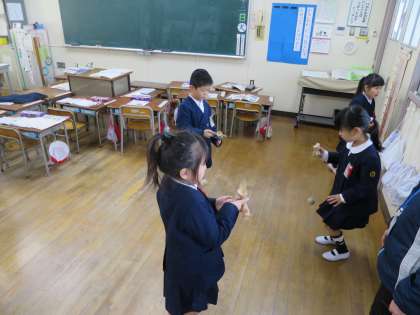 けん玉やお手玉で、昔あそびを楽しみました。技がきまったり、新しいことができるようになると嬉しくて嬉しくて(*^_^*)「見て!見て!」とにっこにこでした。