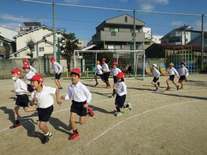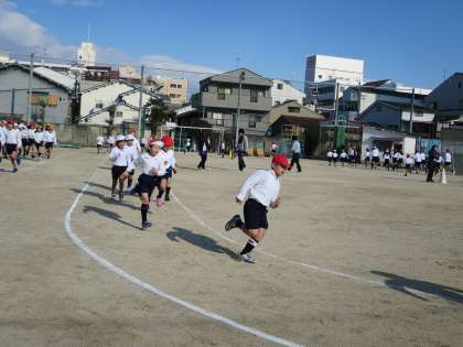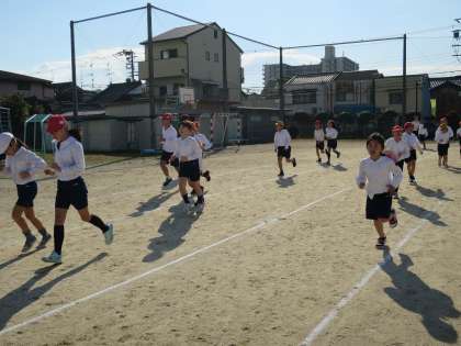 今日から、20分休みは「かけあしタイム」です。初日の今日は、3分間を一生懸命走りました!何周走れたかな?