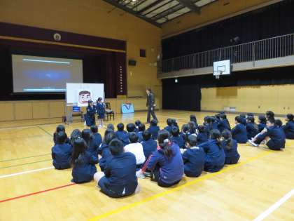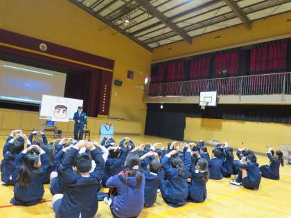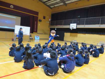 大阪府警察本部と、生野警察暑から、おまわりさんに来ていただいて防犯教室を行いました。悪い人に誘拐されないように、そして自分の大切な命を守るためにはどうすればよいのかを中心に学習しました。