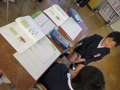国語科「おばあちゃんに聞いたよ」で出てくる春の七草について、どうして七草がゆを食べるのかな?どんな効果があるのかな?などを学習しました。また、みんなで大きな声で元気よく春の七草を唱えました。もう7種類しっかり言えますね!