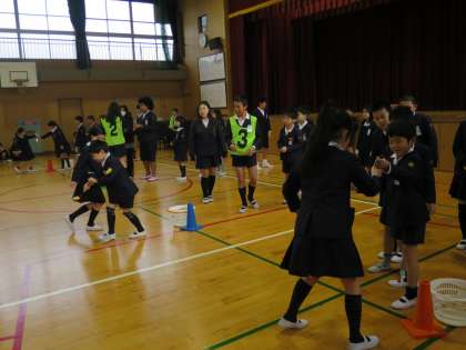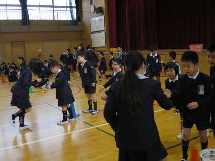たてわり班対抗で、スプーンリレーを行いました。スプーンやお玉でピンポン球を運んでいきます。朝からなかよしのたてわり班です!