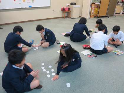 今日は、教科や曜日について学習しました。教科のカードを使ってカルタ取りをしたり、DVDに合わせて、曜日の歌を歌ったりしました♪