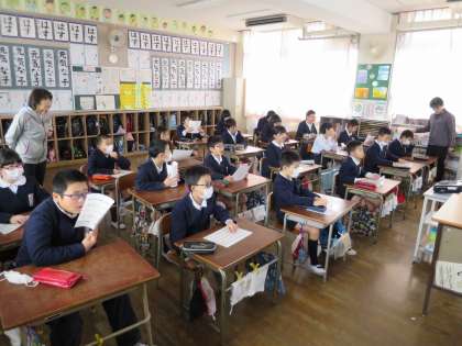 フォニックスジングルは、アルファベットを目でも確認しながら元気よく言えていました!