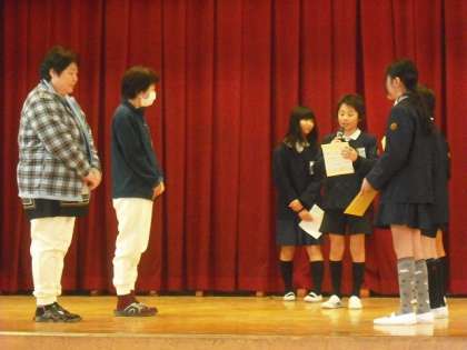 今日から給食週間です。いつもおいしい給食を作ってくださっている給食調理員さんに感謝の気持ちを込めて書いた手紙全児童が書き、代表児童から手渡しました。