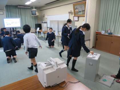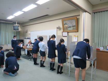 生野区選挙管理委員会の方をゲストティーチャーにお迎えし、選挙について学習しました。選挙クイズをしたり、実際に模擬投票体験や開票作業をしたりして選挙の仕組みがよくわかりました。