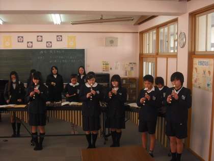 今日の音楽の時間に、6年生が「風を切って」を合奏しました。みんなの心が一つになって、それぞれのパートの音もしっかりと重なり、聴きごたえのある演奏でした。何より、22人全員で合奏できたことを、とてもうれしく思いました。