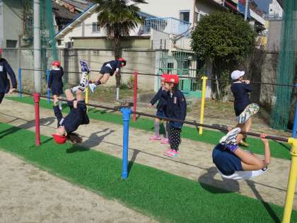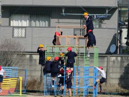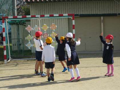 「運動場で遊んでいいですよ」と許可がでたのが休み時間終了5分前!5分でも嬉しくて運動場で思いきり遊んでいました。
