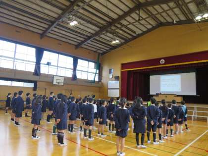 1年生から5年生で、卒業をお祝いする会に向けて歌の練習をしました。今年プレゼントする歌は、「世界に一つだけの花」です。サプライズもあります!6年生のみなさん、お楽しみに(*^_^*)